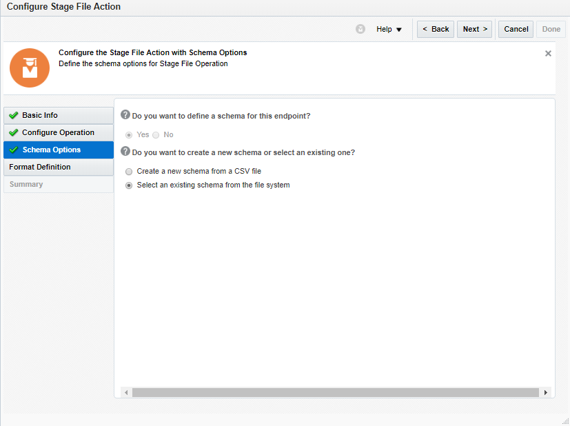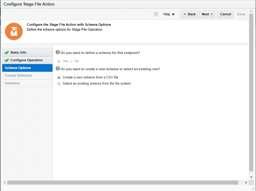 - Select “Create a new schema from a CSV file” Radio button and click the Next button