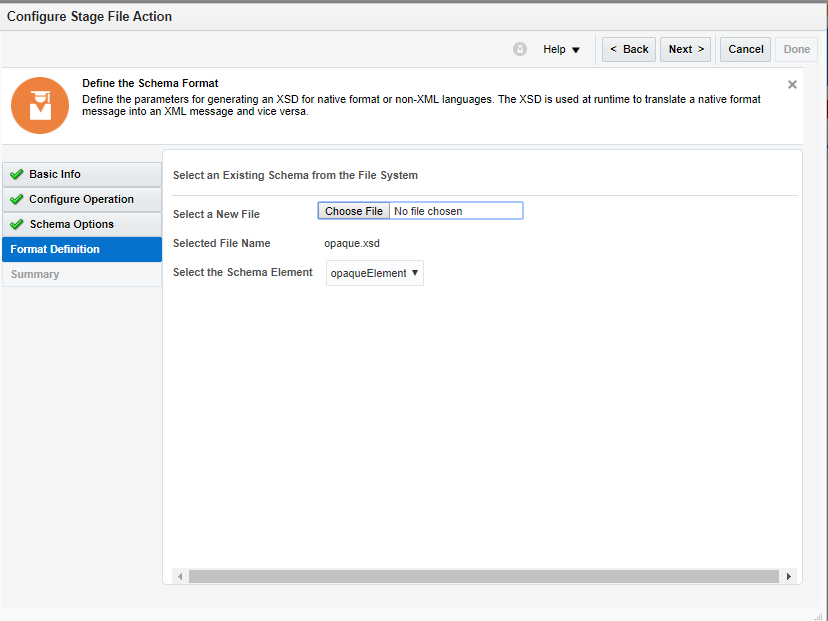 - Past the below schema in notepad file, save it and select using the “Choose File” option